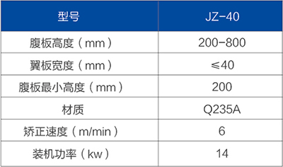 2、H型鋼翼緣矯正機可根據用戶翼緣板高厚度需求選擇JZ-40型翼緣矯正機。
